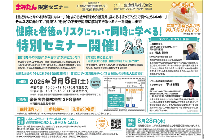 特別セミナー開催!!健康と老後のリスクについて同時に学べる!