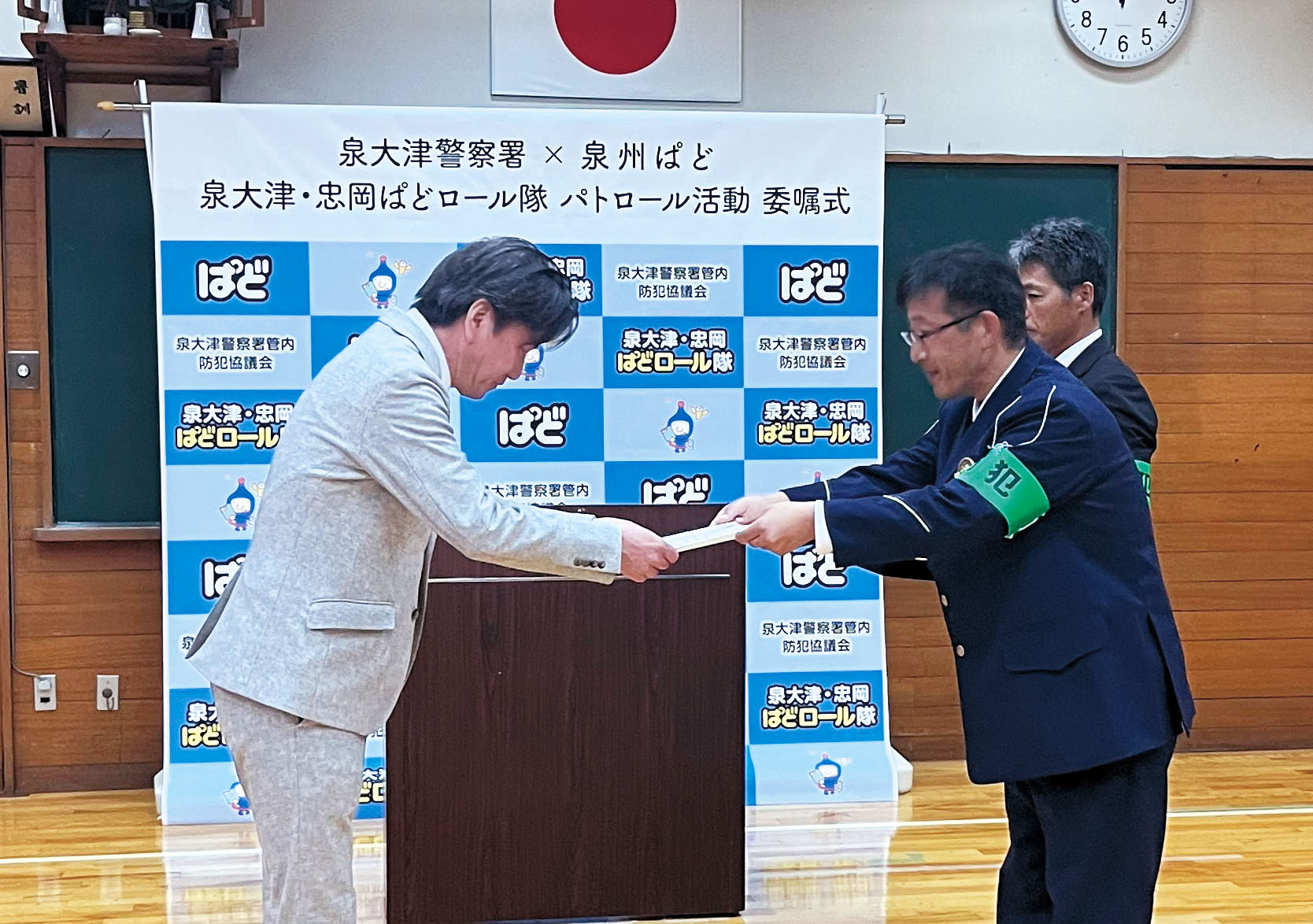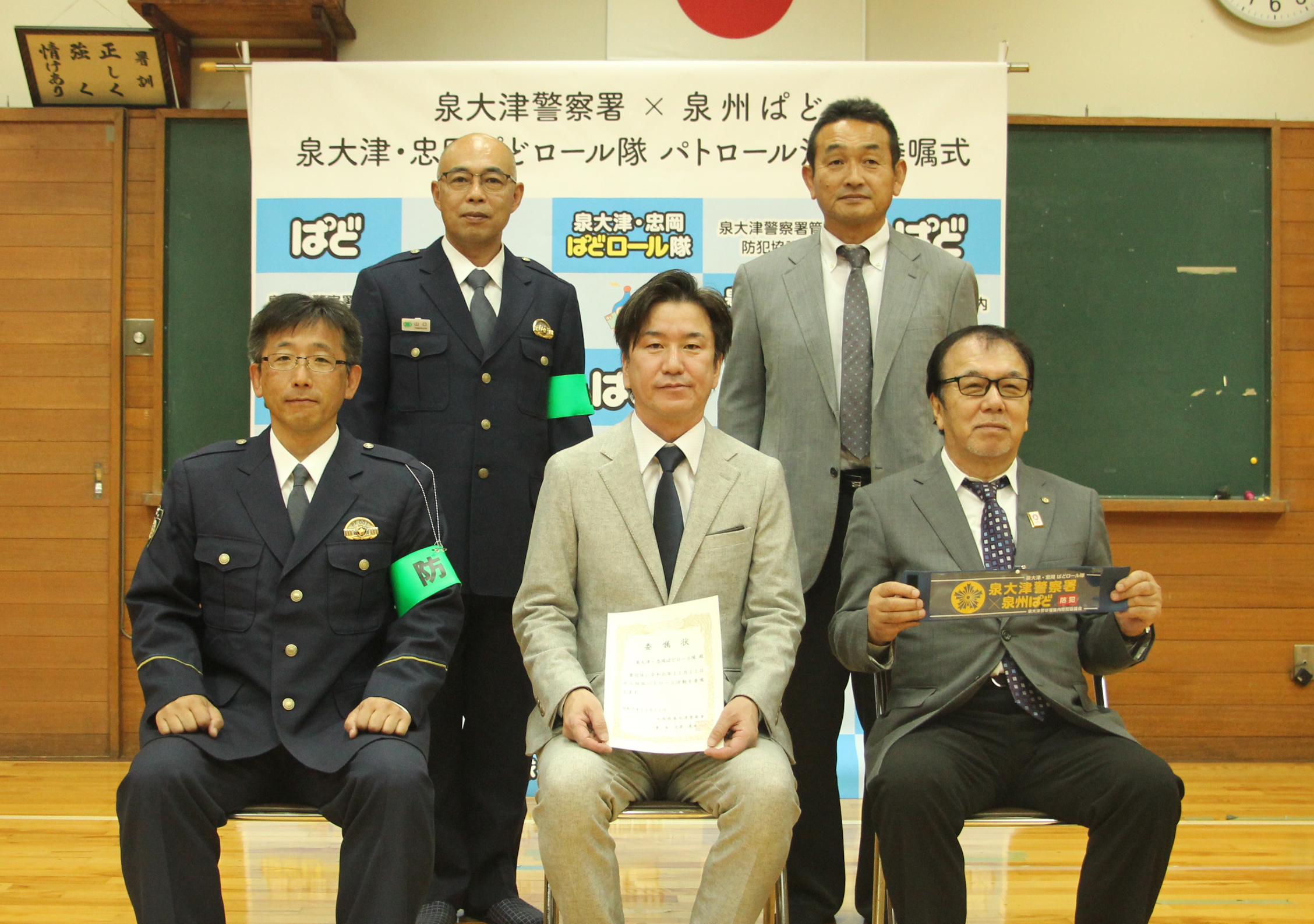 泉州広告株式会社は、泉大津警察署とのコラボレーションにより、泉大津市・忠岡町でも防犯パトロール部隊を結成し、地域防犯を強化する取組を行う事になりました。この取組は岸和田市・泉佐野市・熊取町・田尻町・泉南市・阪南市・岬町・和泉市・高石市に続き10例目となります。12月からの活動開始に先立ち、11月11日(月)に、泉大津警察署にて「泉大津・忠岡ぱどロール隊」の委嘱式を行いました。